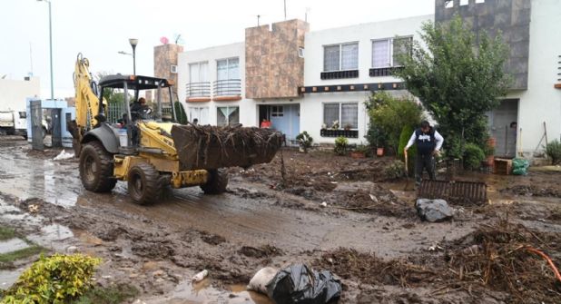 Desde la tarde del jueves, más de 500 personas están trabajando con 10 excavadoras, 12 camiones de volteo, 10 camiones cisterna para desazolve y 12 pipas.