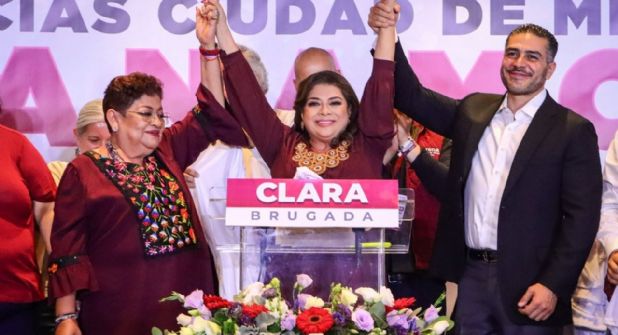 Brugada Molina estuvo en la conferencia desde el centro de operaciones de Sheinbaum y posteriormente en el templete en el Zócalo, pero no tomó la palabra, sin embargo, ambas candidatas se levantaron la mano como ganadoras.