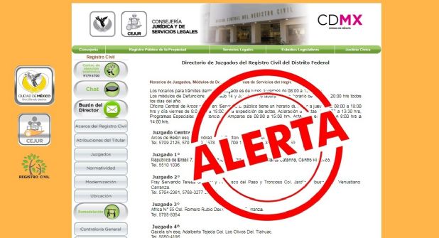 Las autoridades del gobierno de la Ciudad de México han emitido un aviso dirigido a la población, informándoles de una página falsa, posiblemente fraudulenta, del Registro Civil capitalino, por lo que piden que antes de ingresar cualquier dato para la realización de algún trámite, verifiquen con antelación la dirección del sitio web en el que se encuentran.