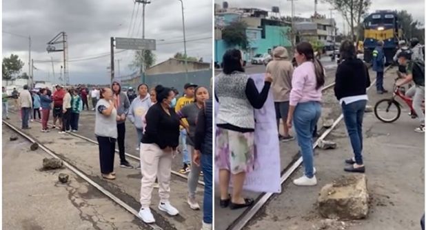 Vecinos de la colonia Ciudad Lago en el municipio de Nezahualcóyotl bloquean el paso del ferrocarril a la altura de las vías, localizadas sobre avenida Ferrocarriles y Oriente 16, en exigencia de la intervención d las autoridades ante la posibilidad de que ocurra un estallido como resultado de un derrame de combustible en la zona.