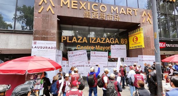 La plaza comercial ubicada en Izazaga 89, esquina con Nezahualcóyotl, en el Centro Histórico de la Ciudad de México, en donde se comercializaban productos de origen chino, fue clausurada este 11 de julio alrededor del mediodía. Ello, debido a que no cuenta con la documentación correspondiente para acreditar los trabajos de intervención del inmueble que ha hecho recientemente.
