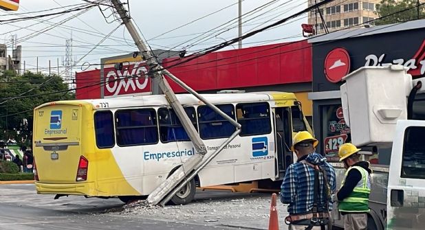 La unidad de la línea empresarial, número económico 737, se impactó contra un poste de luz y la entrada de un local de comercio sobre avenida Isidro Fabela.