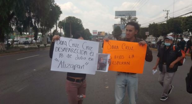 Dijo que este martes, vinieron a acompañar a los familiares de Sara Cruz Cruz, quien fue vista por última vez en la colonia Revolución en Atizapán, realizaron con ellos un primer bloqueo en la avenida Sor Juana Inés de la Cruz en Tlalnepantla centro, donde policías de género los mandaron a realizar su bloque a Atizapán con el argumento de que es competencia del ministerio público de ese lugar dar seguimiento de la denuncia por desaparición de la joven.