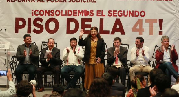 En la conferencia la acompañó el diputado federal del PT, Gerardo Fernández Noroña, quien inusualmente acudió de saco y corbata. El legislador habló sobre la reforma judicial y advirtió que no habrá ni un milímetro dé marcha atrás, pese a lo que llamó “resistencia sobre el tema”.