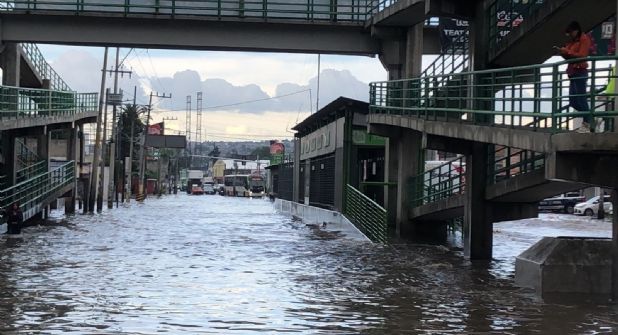 La estación del Mexibús Insurgentes, de la línea uno de este sistema de transporte masivo, tuvo que ser suspendida de manera temporal a la circulación de unidades debido a la cantidad de agua acumulada que se registró en los costados de la vía y que impidió el paso de las unidades del transporte masivo.