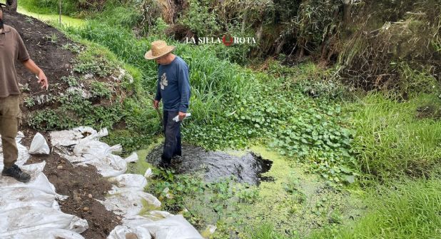 Los productores del paraje improvisaron una especie de presa para almacenar agua. Encostalaron un segmento del canal y para evitar conflictos con los vecinos, dejan fluir algo de lo que se junta, además de que lo hicieron con una consulta previa. Esa división la hicieron con costales que no fue fácil llevar ahí.