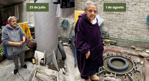 En su desesperación, los hijos de Elena Estrada, de 76 años, hicieron público su caso en redes sociales. La Silla Rota acudió a su hogar y se constató que la enorme estructura había comenzado a hundirse, había causado grietas y fisuras en el suelo y se había comenzado a inclinar ligeramente hacia la casa.