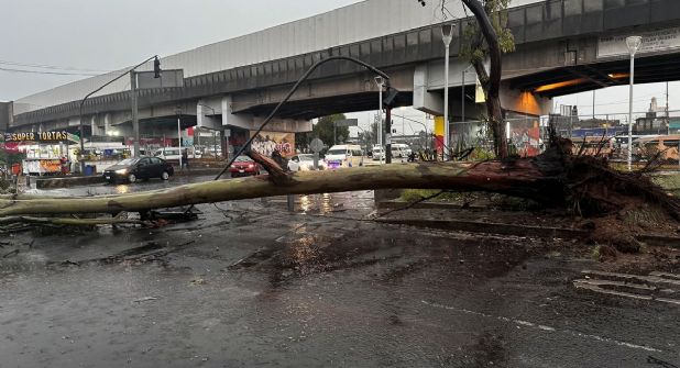 De acuerdo con reportes preliminares, un árbol de 10 metros causó daños en dos autos y derribó un poste de madera cuando se cayó en la esquina de Norte 17 y Oriente 166, colonia Moctezuma, segunda Sección, alcaldía Venustiano Carranza.