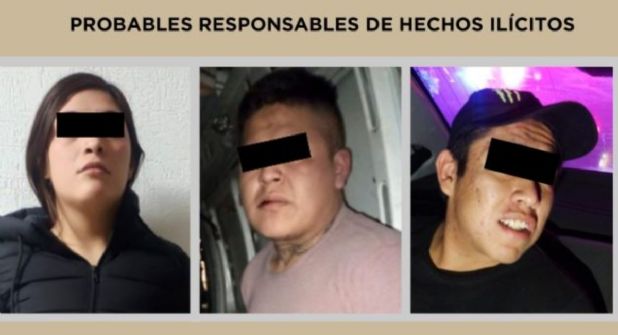 De acuerdo con los informes, las tres personas identificadas como Eduardo N., alias “El Tapia”, Galilea N., alias “La Gali” y Eduardo N., alias “El Sorry”, de 20, 22, y 23 años de edad respectivamente, fueron detenidos durante un operativo la madrugada del domingo en un domicilio en la colonia San Mateo.