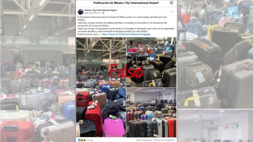 La cuenta oficial de Facebook del Aeropuerto Internacional “Benito Juárez” Ciudad de México publicó que la página que difundió que la supuesta venta de maletas perdidas en redes sociales es un fraude.