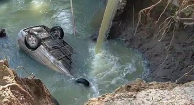 De acuerdo con los primeros reportes, un movimiento de tierra en la zona originó el desprendimiento del terreno donde transitaba un automóvil. El vehículo se precipitó al río y quedó parcialmente sumergido.