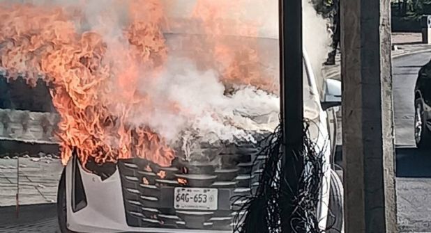 Los reportes preliminares indicaron que elementos del Heroico Cuerpo de Bomberos lograron controlar el incendio de una camioneta eléctrica de color blanco a la altura de Grupo Radio Centro.