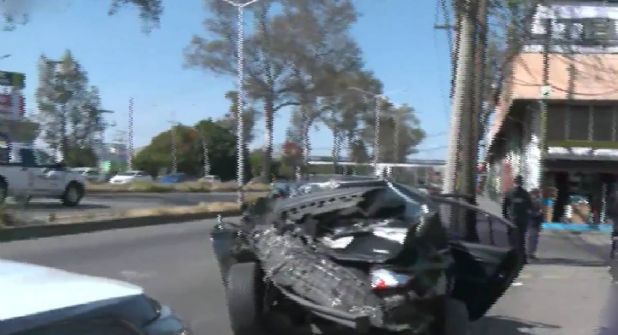 El conductor del auto de nombre Ernesto está vivo de milagro, sólo con algunos golpes, pues su auto quedó completamente desecho tras haberse impactado contra un poste.