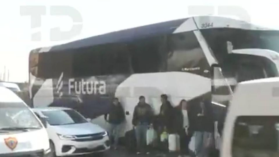 Los pasajeros del camión de turismo tuvieron que subirse, cargar su equipaje y ser trasladados en otro autobús de pasajeros hacia su destino, lo que se congestionó aún más el tránsito.