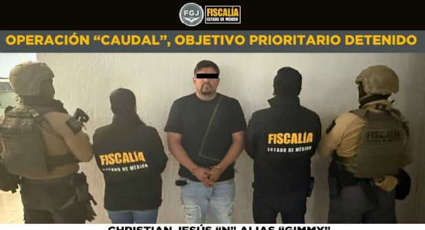 La Fiscalía General del Estado de México (FGJEM) informó que elementos de la dependencia cumplimentaron la orden de aprehensión como parte de la segunda fase de la "Operación Caudal”, en la que “Gimmy” era considerado un objetivo prioritario, ya que se le vincula con actividades delictivas en la extracción, distribución y comercio ilícito de agua en el estado.