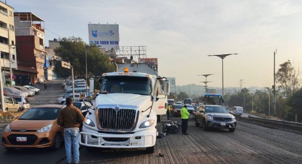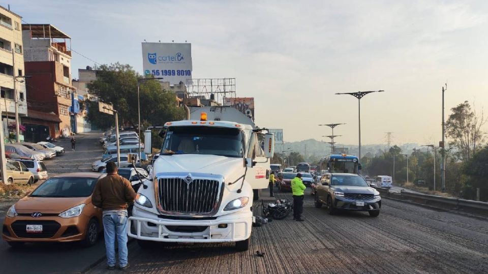 Esta mañana, un motociclista murió atropellado por una pipa de doble remolque cuando derrapó por carriles centrales de la autopista México-Pachuca con dirección Indios Verdes.