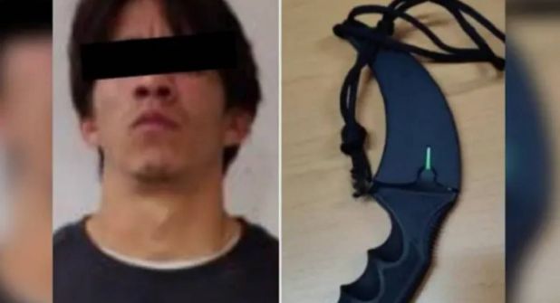 El responsable de 28 años de edad de nombre Jovani "N" fue ubicado metros más adelante cuando caminaba rápidamente; luego de marcarle el alto, los policías le efectuaron una revisión preventiva y le aseguraron un cuchillo de aproximadamente 20 centímetros de largo.