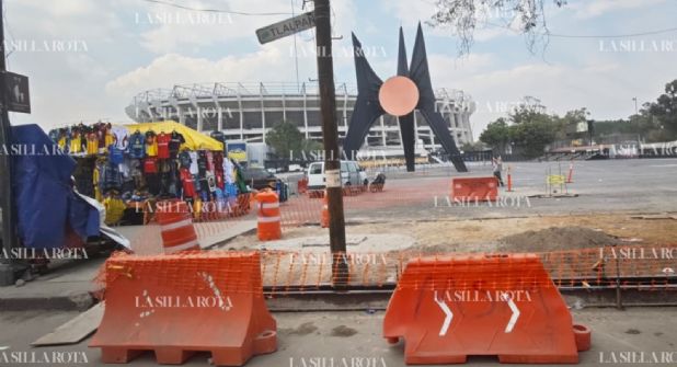 En el entorno inmediato del estadio, una zona triangular formada por Calzada de Tlalpan y Circuito Azteca luce cercada por tapiales, maquinaria pesada y mantas improvisadas. Algunos negocios, como un puesto de tacos, han tenido que colocar anuncios para avisar a sus clientes sobre su nueva ubicación. Otros carteles, más pequeños, expresan el descontento de quienes trabajan en la zona ante las obras.