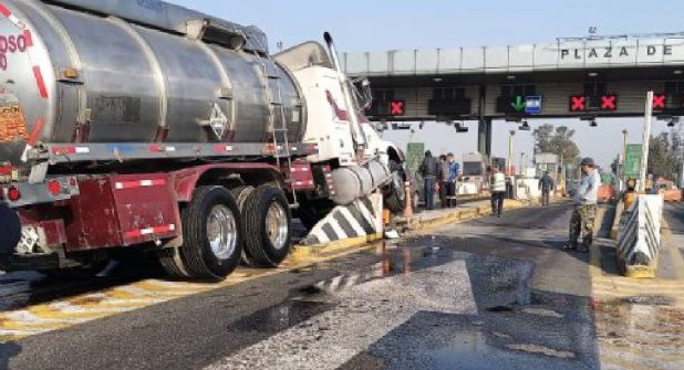 Esta mañana, una pipa de diésel chocó en la caseta de cobro de Tepotzotlán en el kilómetro 44 de la autopista México-Querétaro, por lo que cuatro carriles de la vialidad fueron cerrados como medida de seguridad.