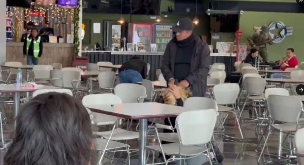 A través de un video compartido en redes sociales se aprecia cómo en el simulacro elementos de la Marina ingresaron armados a las instalaciones del aeropuerto en el área de comida, mientras tanto piden a sujetos poner “manos en la nuca”, a quienes realizan una revisión, los despojan de sus armas, los esposan y posteriormente son detenidos y escoltados hacia la salida.