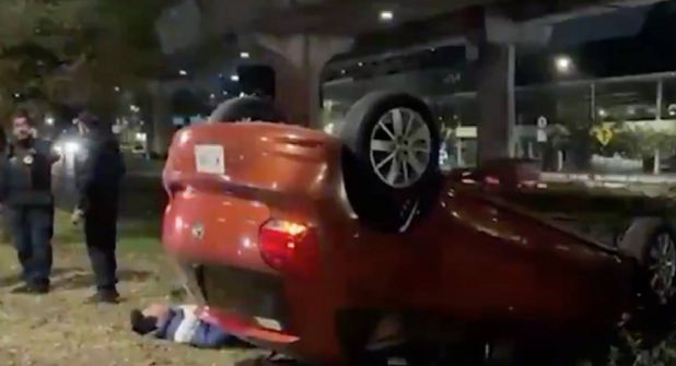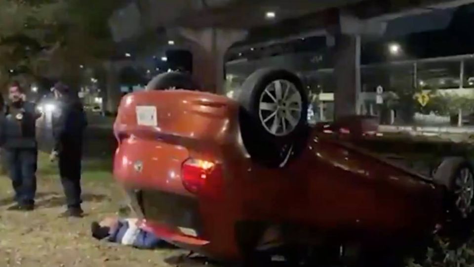 Un conductor de aproximadamente 35 años perdió el control de su automóvil y volcó sobre Periférico Sur, pasando el Hospital de PEMEX Central Sur, con dirección a Insurgentes.