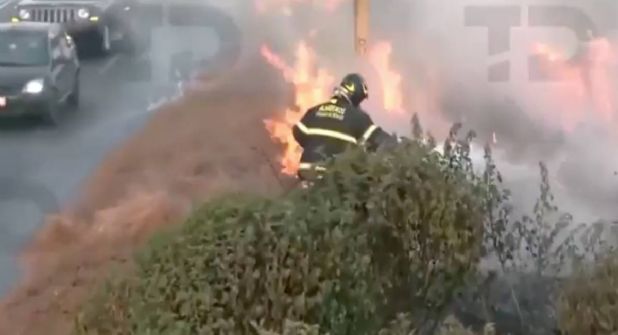 El fuego se propagó a lo largo de más de 30 metros y lo peligroso era que debajo de este camellón central hay ductos de Pemex, informó Telediario.