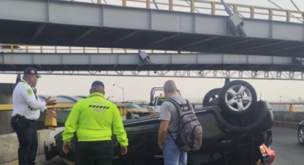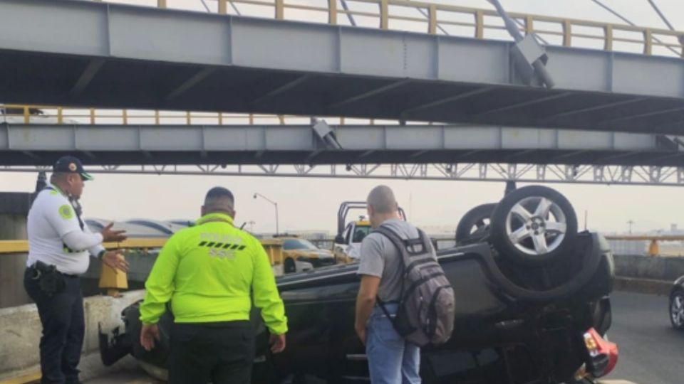 Un automóvil compacto volcó al intentar ingresar a la Terminal 1 del Aeropuerto Internacional de la Ciudad de México (AICM), presuntamente debido al exceso de velocidad.