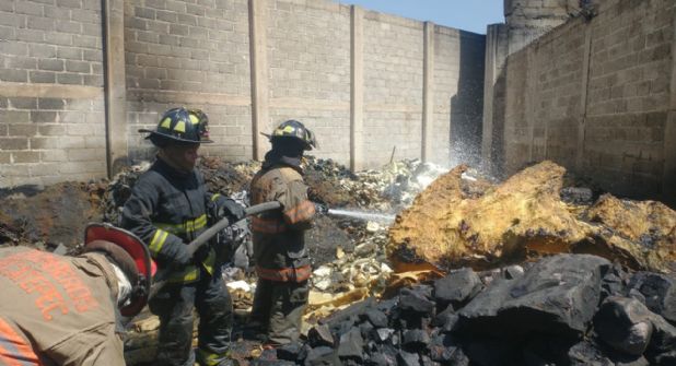 la dirección de protección civil de Ecatepec supervisó el lugar y suspendió el inmueble, que almacenaba hule espuma para la elaboración de colchones.