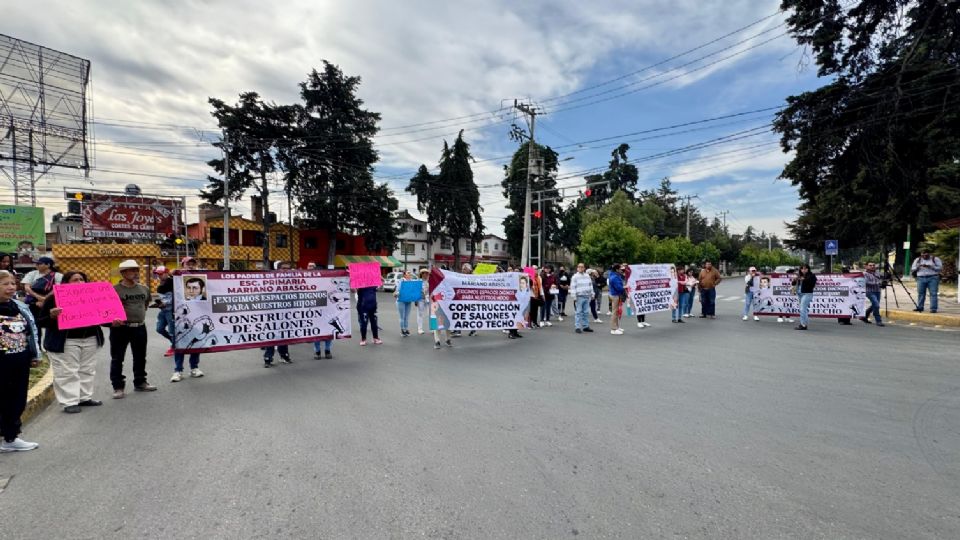 Por otro lado, sobre Paseo Colón, casi esquina con la calle de Vasco de Quiroga, en la delegación de Capultitlán, en la Ciudad de Toluca, padres de familia bloquean la vialidad.