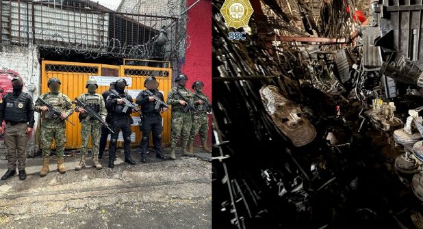 Agentes de la Secretaría de Seguridad de la Ciudad de México, en conjunto con policías de Investigación de la Fiscalía de Justicia local y de la Sedena y Marina aseguraron un predio de la colonia Barrio San Lucas en el que se almacenaban 40 toneladas de autopartes presuntamente robadas y placas del estado de Oaxaca pertenecientes a vehículos con reporte de robo que tenían los números de serie borrados.
