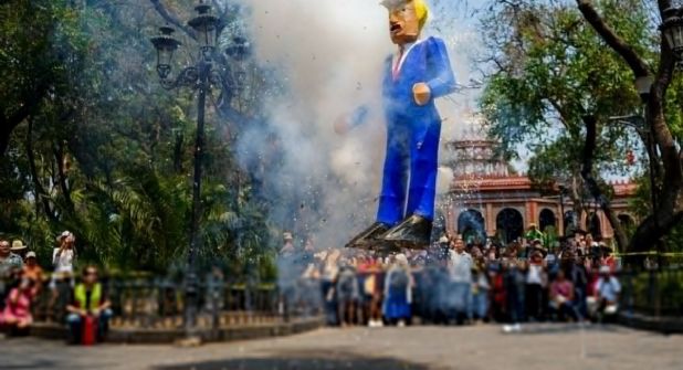 El disgusto por el presidente de Estados Unidos, Donald Trump, se hizo presente este sábado en la treceava edición del Festival de la Cartonería que tuvo lugar en la Alameda de Santa María la Ribera, en la Ciudad de México, donde con motivo de la Semana Santa se realizó el tradicional ritual de la quema de Judas.