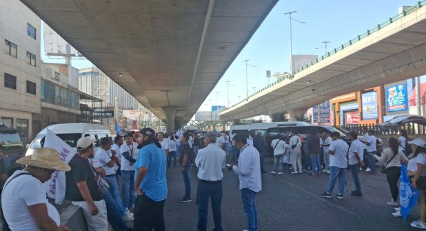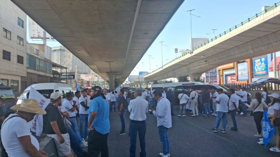 Los manifestantes mantienen cerrada la circulación en carriles centrales y laterales de Periférico Norte, a la altura de Plaza Toreo, en los límites de Naucalpan Estado de México y la Ciudad de México.