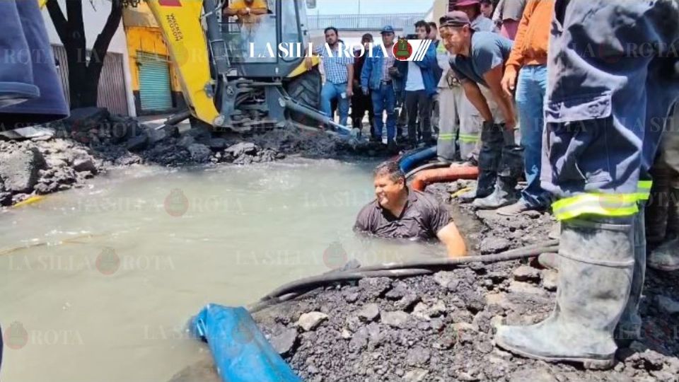 Víctor Javier Bourguett, titular de la Dirección Ejecutiva de Agua Potable, acudió a supervisar los trabajos pero no quiso responder cuántos litros se habían perdido a causa de la fuga y remitió a los periodistas al área de comunicación social.