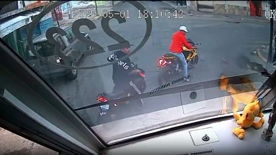 El chofer aceleró y comenzó a avanzar por las calles escapando de los presuntos asaltantes que a bordo de sus motocicletas lo seguían.