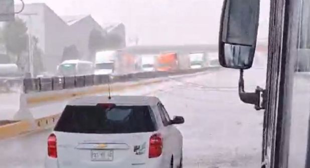 En el Circuito Exterior Mexiquense se registró una granizada, la presencia de hielo en la cinta asfáltica provocó al menos tres accidentes sin consecuencias graves.