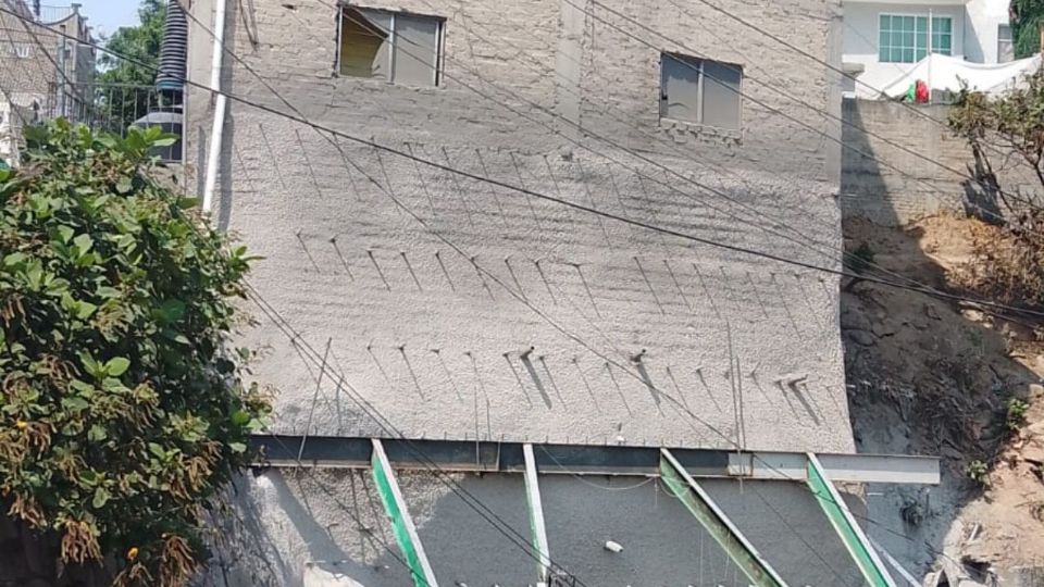 El edificio en proceso de colapso, la “Torre de Pisa” de la colonia Ampliación Benito Juárez, en Naucalpan, Estado de México, fue reforzado con estructuras metálicas en sus cimientos; recientemente registró más grietas y aumentó la inclinación en la parte superior.