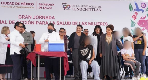 “Queremos combatir el cáncer cérvico-uterino que sufren las mujeres. Y sabemos que una forma de cuidar, es aplicando una vacuna a las adolescentes. Si vacunamos a la adolescencia podemos avanzar en combatir al virus del papiloma humano, que después puede provocar cáncer cérvico-uterino”, dijo Clara Brugada, jefa de Gobierno de la CDMX.
