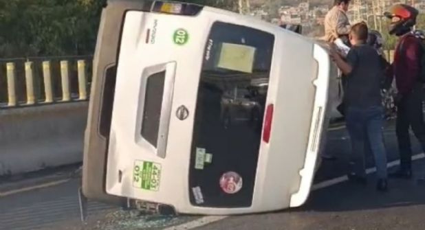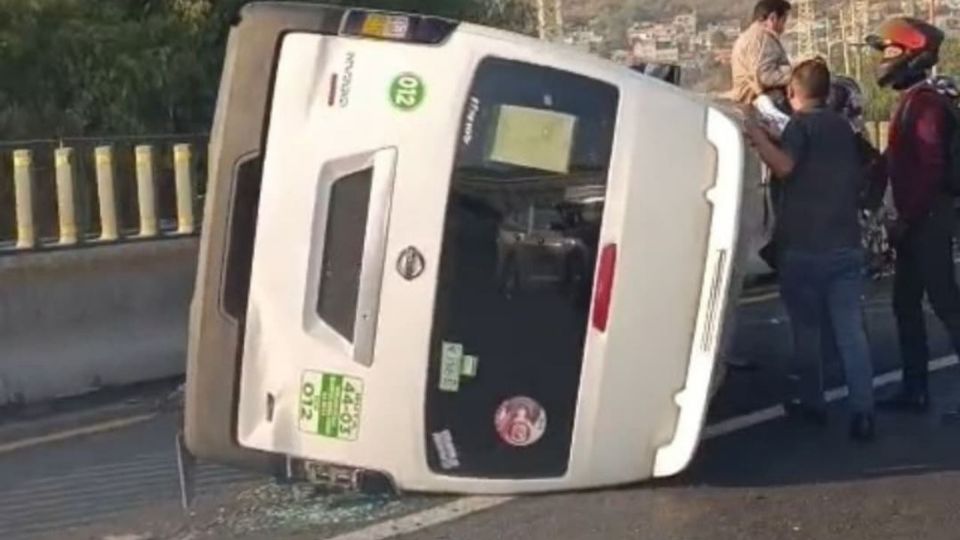 La mañana de este jueves se registró la volcadura de una unidad de transporte público sobre la autopista México–Pachuca, en el kilómetro 14, a la altura de Cerro Gordo, en el municipio de Ecatepec, Estado de México.
