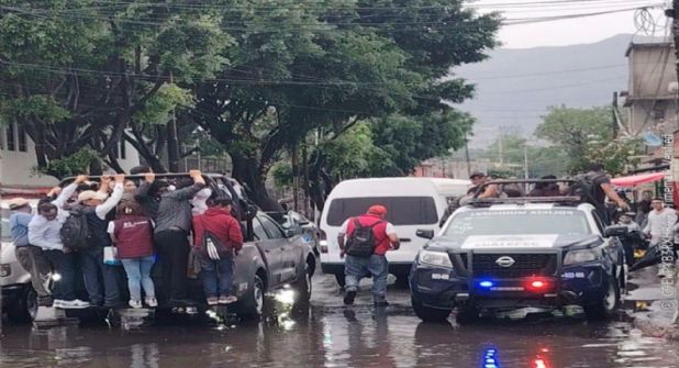 Se realizan labores de desazolve de alcantarillas para agilizar el desalojo del agua, al tiempo que brindan apoyo a los automovilistas y motociclistas que sufrieron alguna afectación en sus unidades.