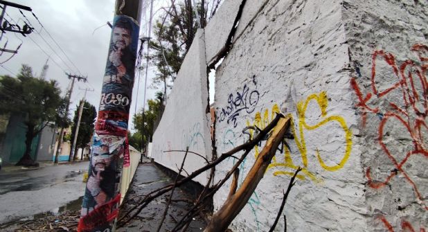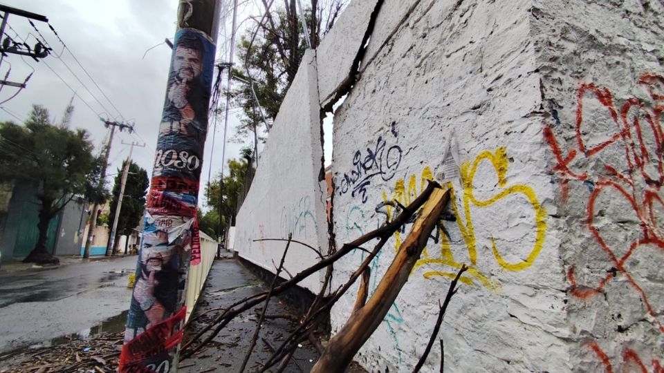 Las lluvias provocaron que una barda de la secundaria 174, “Amado Nervo”, en Azcapotzalco, se resquebrajara; el muro fue apuntalado con vigas y unas cintas amarillas previenen para que nadie se acerque, pero las autoridades no precisaron una fecha de reparación.