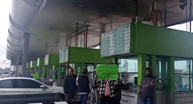 Pobladores de Mina México, del municipio de Almoloya de Juárez, Estado de México, levantaron las “plumas” de la caseta “El Dorado”, en la carretera Toluca-Atlacomulco, para exigir a los gobiernos estatal y municipal, coloquen concreto hidráulico en el camino que los conecta con la comunidad de Santa Juana.