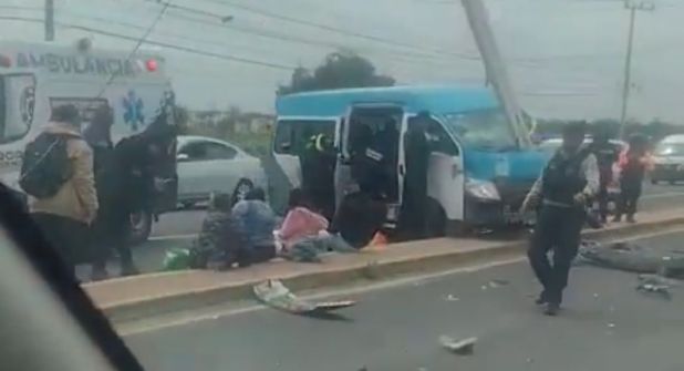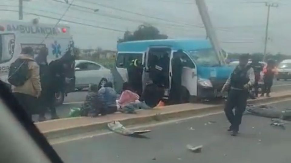 Una unidad de transporte público se impactó contra un poste de luz en la carretera federal México-Pachuca, a la altura del fraccionamiento Rancho La Luz, en el municipio de Tecámac, Estado de México.