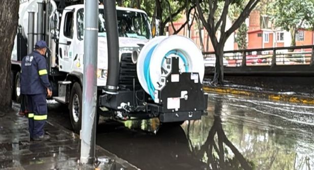 Personal de esta dependencia atiende encharcamientos en varias zonas de la capital del país, como el que se encuentra en Salvador Díaz Mirón, entre avenida Tláhuac y avenida San Rafael Atlixco, colonia Santa Ana Poniente, alcaldía Tláhuac.