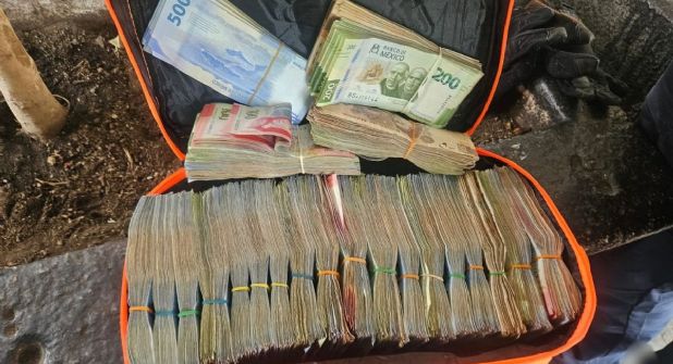 Además, al revisar la cajuela debajo del asiento, localizaron una mochila color naranja que contenía fajos de billetes que sumaban aproximadamente un millón de pesos.