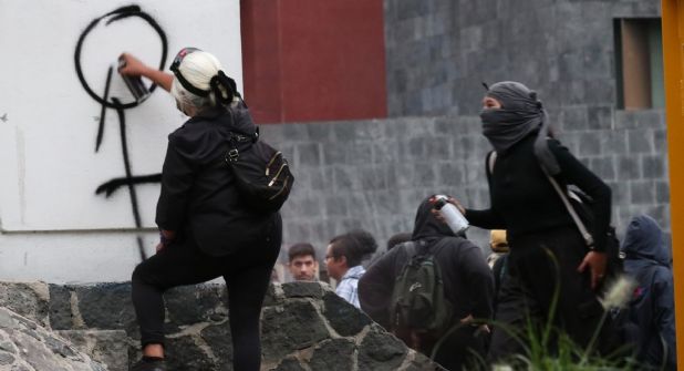 La marcha terminó hacia las siete de la noche cuando un grupo de manifestantes del llamado Bloque Negro y otros ingresaron a Ciudad Universitaria y rompieron los cristales de la fachada del MUAC y pintaron los muros de los edificios cercanos en los que dejaron frases como "el MUAC está lleno de blancos".