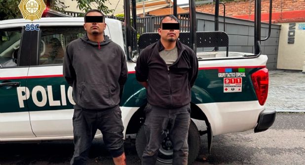 Dos hombres fueron detenidos en la colonia Bosques de las Lomas, en la alcaldía Miguel Hidalgo, en la Ciudad de México luego de que la Secretaría de Seguridad Ciudadana (SSC) recibiera una denuncia ciudadana por el ingreso de dos sujetos a un domicilio particular brincándose la barda.