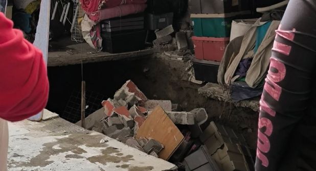 Cabe señalar que, como daño colateral, se identificó riesgo de socavación en un área de 12 metros cuadrados ubicada en un patio sobre la calle Emiliano Zapata, justo detrás del inmueble afectado.