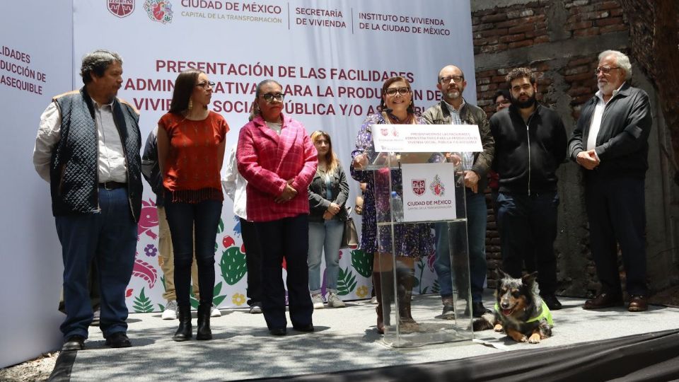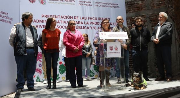 Desde la colonia Buenos Aires, una de las zonas incluidas en el primer polígono de "tensión inmobiliaria" debido a la gentrificación, Clara Brugada Molina presentó el "Acuerdo de Facilidades Administrativas para la Producción de Vivienda Social Pública y/o Asequible".