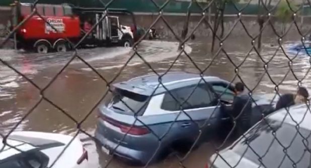 Uno de los puntos más afectados fue la Prolongación Hidalgo, frente a la estación San Rafael del Tren Suburbano en Tlalnepantla, donde el agua alcanzó hasta 50 centímetros de altura.