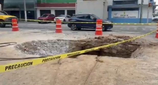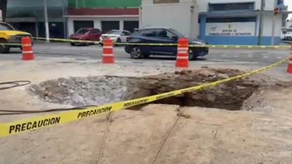 También al lugar llegó persona de la Secretaría de Gestión Integral del Agua quien señala que la cavidad se dio tras una fuga de agua.